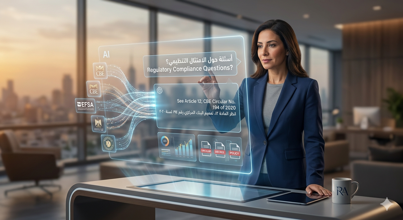 Egypt's regulatory environment moves fast. CBE circulars, ministry decrees, EFSA updates — the documents pile up, the deadlines don't wait. The Intelligence Agent ingests your full regulatory corpus and makes it instantly queryable by anyone on your team, in Arabic or English.